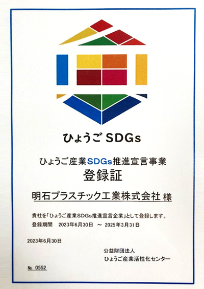 2023年6月30日 ひょうご産業SDGs推進宣言企業として認定されました。
